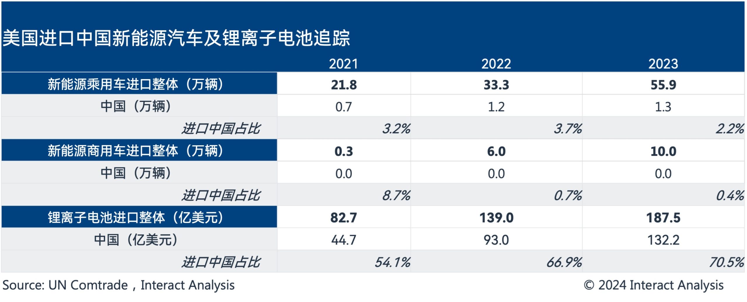 新能源汽车:中国并非美国进口重要来源国,进口占比仅0.4%。